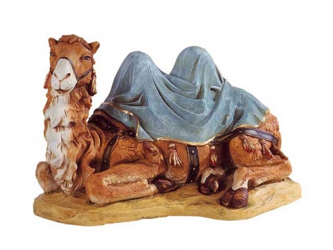Camel laying down. Figure in resin, wood style. 52 cms.
