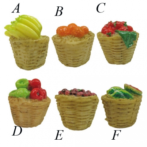 Cesto de frutas surtidos. Medidas 4x3x2 cm. 6 modelos para figuras 10-15 cm. Precio por unidad.