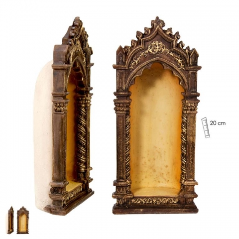 Hornacina para imagén en resina decorada marrón. Diseño Giordano di Ponzano. Disponible en varios tamaños,en 20 y 30 cm de altura.