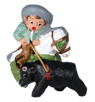 Toro cabeza arriba en 4 cm de barro. Barro granadino.