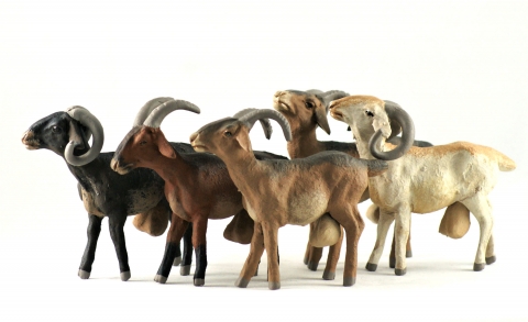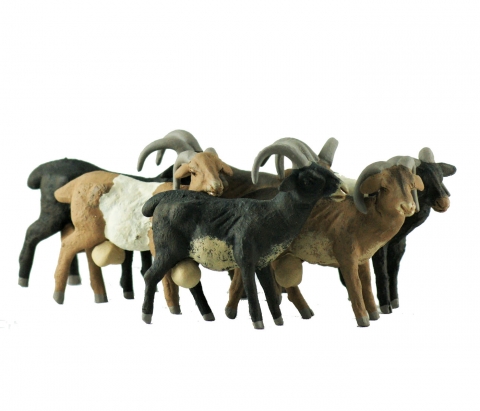 Goat collection 14 cm. Made of ceramic paste and decorated with acrylic. Design by H.nos Cerrada. Price by unit.
