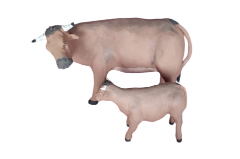 Cow and calf. Hebrew Nativity Collection 12-15 cm. Height figure 9.5 cm. Montserrat Ribes model.