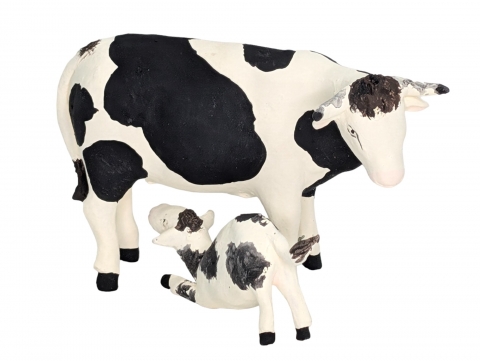 Vaca amamantando a su ternero de barro. Disponible en varios tamaños. Foto orientativa debido al carácter artesanal de la pieza.