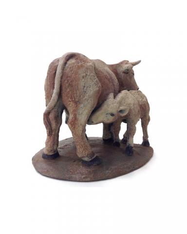 Vaca y ternero. Colección Belén Hebreo de 12-15 cm. Altura figura 9.5 cm. Modelo de Montserrat Ribes.
