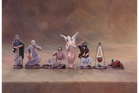 The announcement of the shepherds in polychrome mud and cloth.Design by Galán in 21 cm.