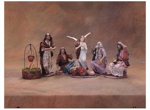 Anunciacion a los pastores en barro policromado. Diseño de Belenes Galán. Disponible en varios tamaños.