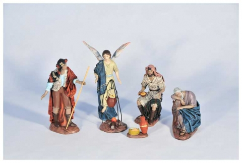 Anunciacion a los pastores en barro policromado y tela.Diseño de Belenes Galán en 21 cm.