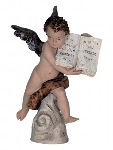 Cherub of 19 cms in terracotta and acrylic polychrome modeling by the art workshop May.