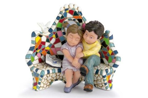 Lovers on the bench. Resin figure designed by Nadal. Measures 10 cm. Numbered Limited collection.