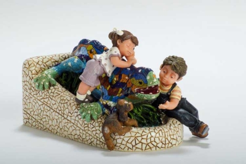 Lovers on the bench. Resin figure designed by Nadal. Measures 8 cm. Numbered Limited collection.