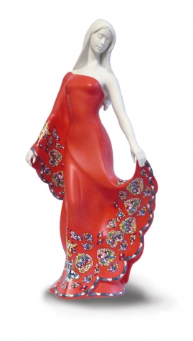 Con elegancia decorada en rojo. Figura en resina diseñada por Nadal. Medidas 27 cm. Colección limitada numerada.