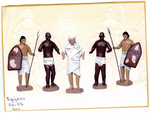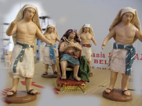 Egipcio con esclavos y soldados.Diseño de Serrano en barro.Disponible en varios tamaños.