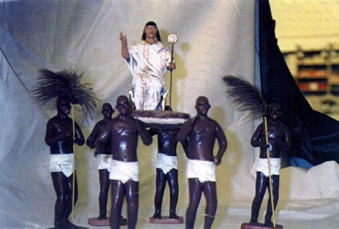 Egyptian with porters. Design Serrano in mud.Available in various sizes.