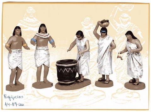 Egyptian with slaves and soldiers. Design Serrano in mud.Available in various sizes.
