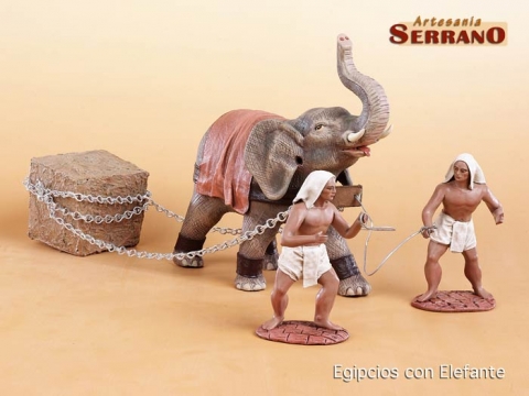 Egipcios con elefante.Diseño de Serrano en barro.Disponible en varios tamaños.