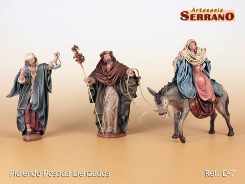 Pidiendo posada, grupo de 3 piezas estilo hebreo en barro lienzado, serie 707. Realizado por Serrano.Disponible en varios tamaños.