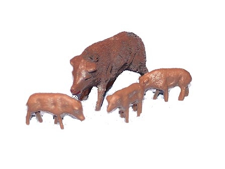 Familia de Jabalies en pie en plástico. Altura 3 cm.