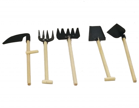 Herramientas surtidas para campo y jardín. Cinco modelos. Altura media 10 cm.