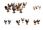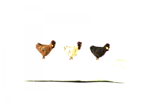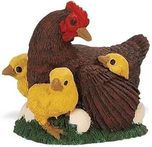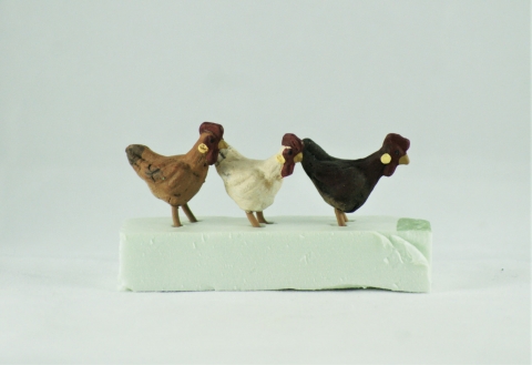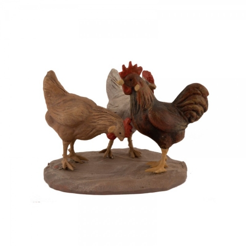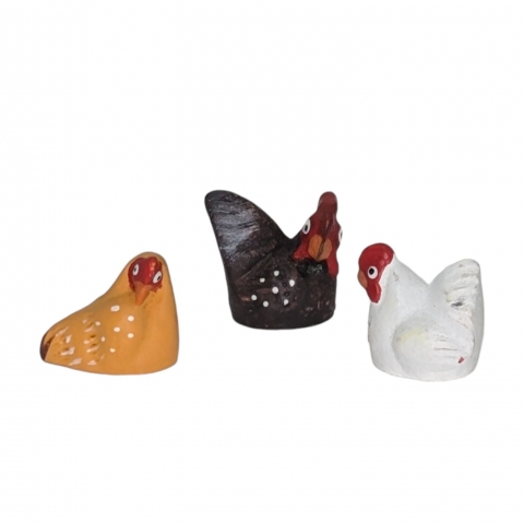 Gallinas y gallo de resina. Medidas : 2x1.8 cm. Tres modelos. Foto orientativa debido al carácter artesanal de la pieza. Precio por unidad.