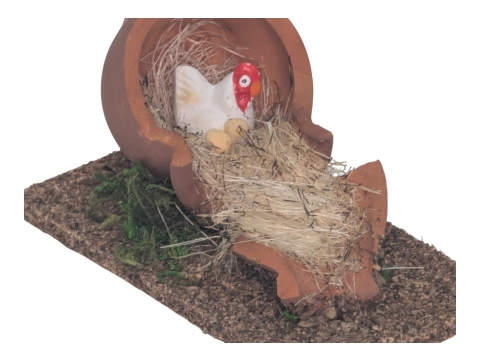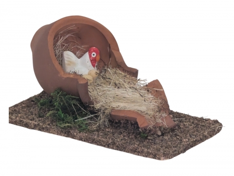 Chicken coop in a pot for 4 cm figures. Made of Granada clay. Approximate measurements: 9 x 5 x 4.5 cm.