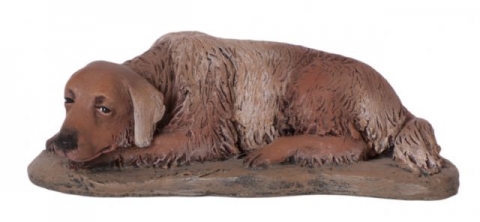 Perro tumbado 19 cm diseñado por J. Mayo. Novedad 2019.Pasta de cerámica. Realizado en terracota y policromía acrílica modelada por el taller artístico.