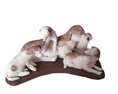 Perra amamantando cachorros de barro .Disponible en varios tamaños. Foto orientativa debido al carácter artesanal de la pieza.