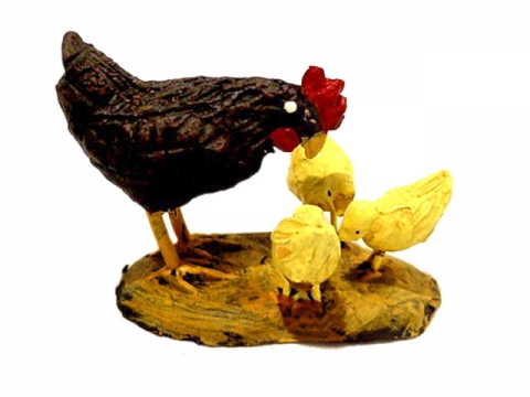 Gallinas. Para figuras de 21 cm. Pieza modelada a palillo por Manuel Villarán.