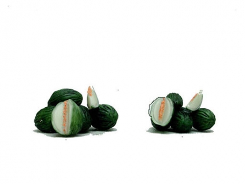 Large melons in a group of modelina. For figures 12-14 cm. Made by Cristina Cantos.