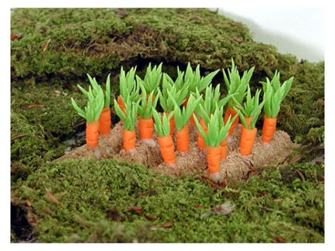 Zanahorias de modelina. Venta por unidades, huerto no incluido. Medida 5 cm. Realizado por Cristina Cantos.