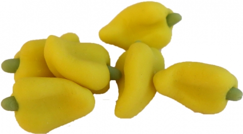 Pimientos amarillos de modelina. Bolsa de 6 unidades. Medida 1 cm. Realizado por Cristina Cantos.