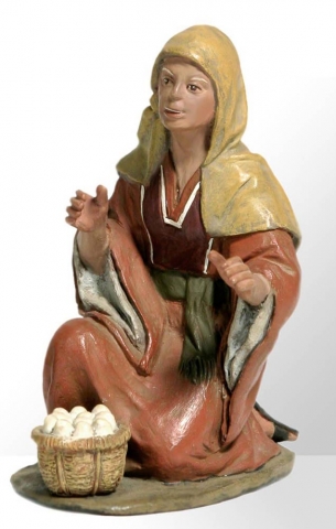 Shepherdess with basket of eggs 14 cms. Nº 1 in terracotta and acrylic polychrome modeled by the artist's workshop Mayo.