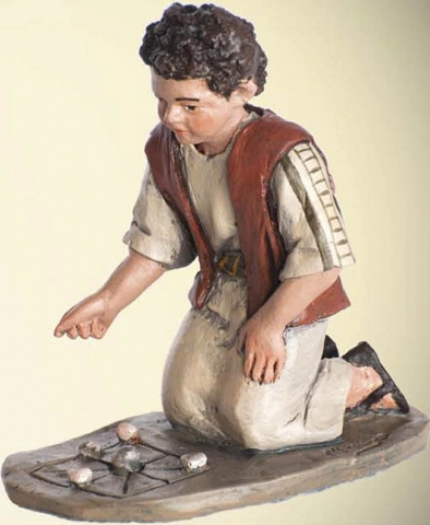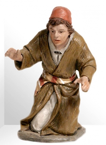 Pastor niño arrodillado en 14 cms. N º 17 en terracota y policromía acrílica modelada por el taller artístico Mayo.
