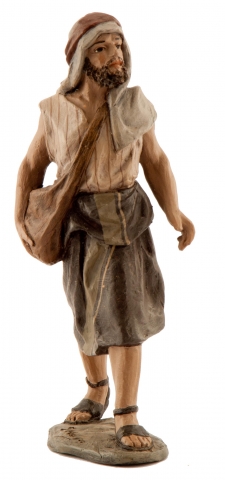 Shepherd with load on back in 14 cms. No. 16 in terracotta and acrylic polychrome modeled by the artist's workshop Mayo.