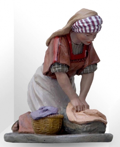 Pastora lavandera 14 cm en terracota y policromía acrílica modelada por el taller artístico Mayo.