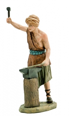 Herrero de 14 cm en terracota y policromía acrílica modelada por el taller artístico Mayo.