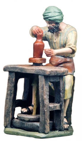 Alfarero de 14 cm en terracota y policromía acrílica modelada por el taller artístico Mayo.