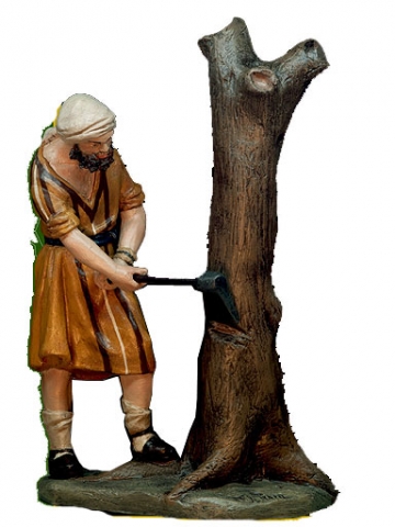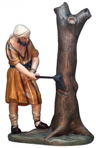 Woodcutter of 14 cm in polychrome terracotta and acrylic modeled by the artist's studio in May.