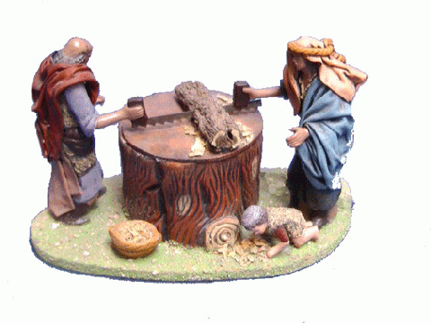 Carreta hombre con niño y dos bueyes 15 cm.
