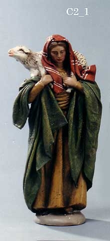 Shepherd with a lamb in her arms.. Model Nº 3. Serial C2 in 20 cm. Design decorarte in mud.