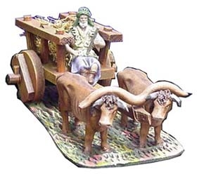Cart with shepherd and two oxen 7 cm.