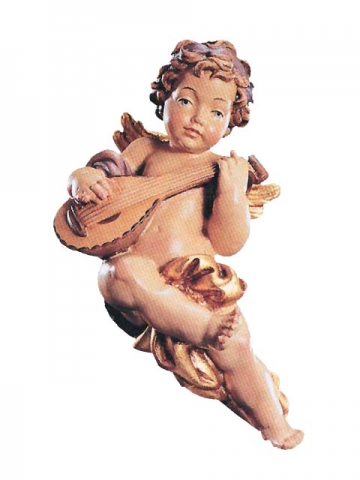Angel en madera policromada ,figura de 11cm con caja de musica.