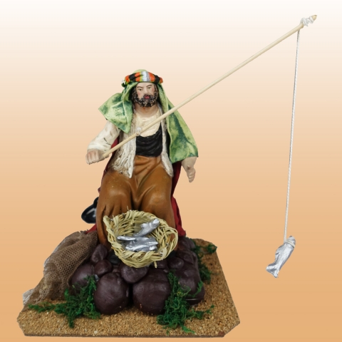 Pescador con movimiento 14 cm. Diseño de Serrano en barro.