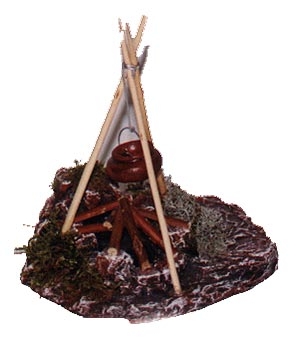 Fuego con llama y troncos para anunciación. Serie en Corcho. Medidas 16x10x8 cm. Para figuras 10-12 cm.