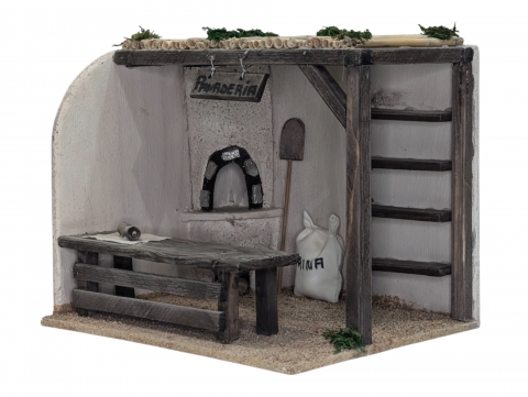 Panaderia para figuras 12- 14 cm. Medidas: (LxAxH): 25x20x20 cm. Realizada en madera. Foto orientativa debido al carácter artesanal de la pieza.