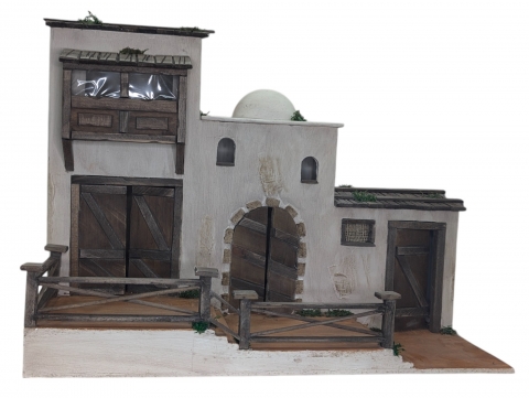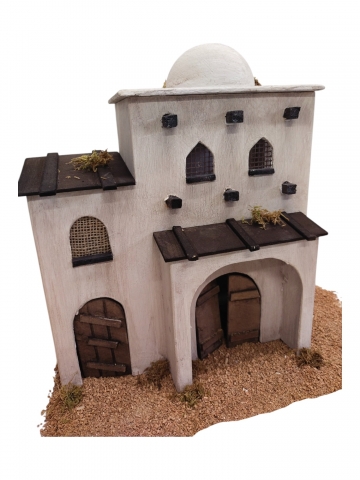 Moorish house with entrance and arch for 12-14 cm figures. Measurements (LxWxH): 55x20x40. Door height 14.5 cm. Made of wood. Photo is for guidance only due to the handmade nature of the piece.