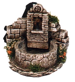Sinai fountain for Belén in polychrome resin with acrylic. Dimensions (length x width x height): 17x16x18 cm. Estepa Belenes design.
