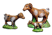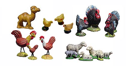 Los animales no deben faltar para completar la serie del belén de los cabezones. Nos ofrecen un amplio surtido para acompañar a los pastores en su quehacer cotidiano.