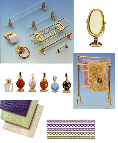 Repisas , toalleros y toallas, jaboneras, cepillos de dientes, espejos, perfumes y articulos de tocador... Shelves, towels, soap-dishes, toothbrushes, mirrors, perfumes and dressing room articles... |