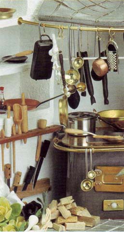 Cacerolas , peroles, sartenes, cuchillos, coladores, rodillo ,cubiertos , alimentos... Saucepans, kettles, pans, knives, strainers, roller, cutleries, foods... |