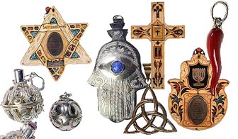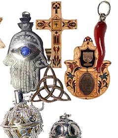 Amuletos y Talismanes Amulets & Talismans La diferencia entre amuleto y talismán es su portabilidad. La función de todos es protegernos y ofrecernos alguna bendición . El talismán suele ser de mayor tamaño y se coloca en los altares y hogares. Los amuletos se portan en la persona y suelen ser colgantes o bien algún objeto The difference between the amulet and talisman is its portability. Function is to protect us and give us all a blessing. The talisman is usually larger and placed on altars and homes. Amulets are carried in the person and are usually hanging on some object. | |||